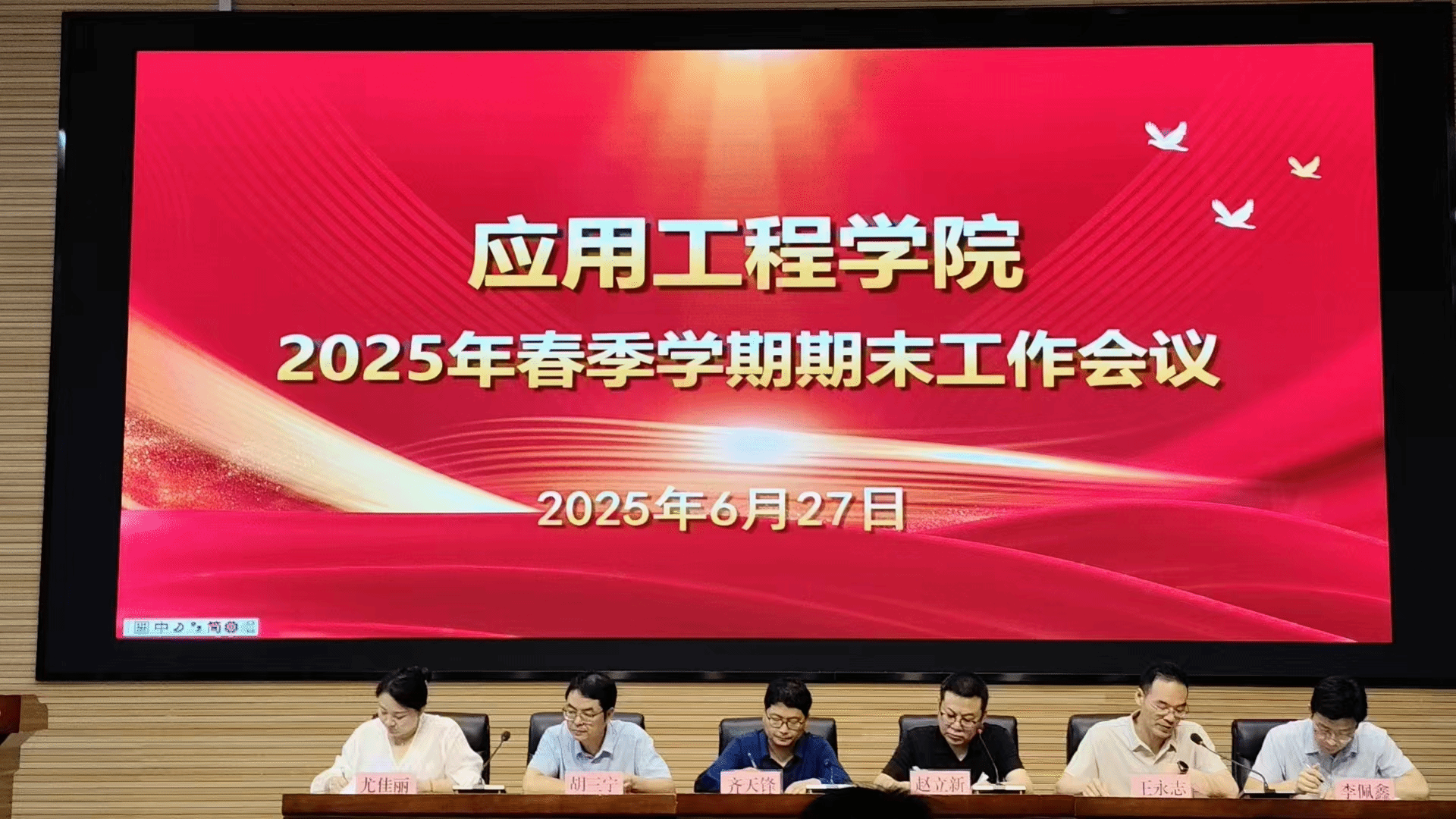 6月27日下午,应用工程学院在5137报告厅召开2025年春季学期期末工作会议,总结前期工作,部署暑期及下学期重点任务。应用工程学院党委副书记齐天锋、副院长赵立新出席会议并讲话,各科室负责人及全体教师参会。会议由赵立新主持。