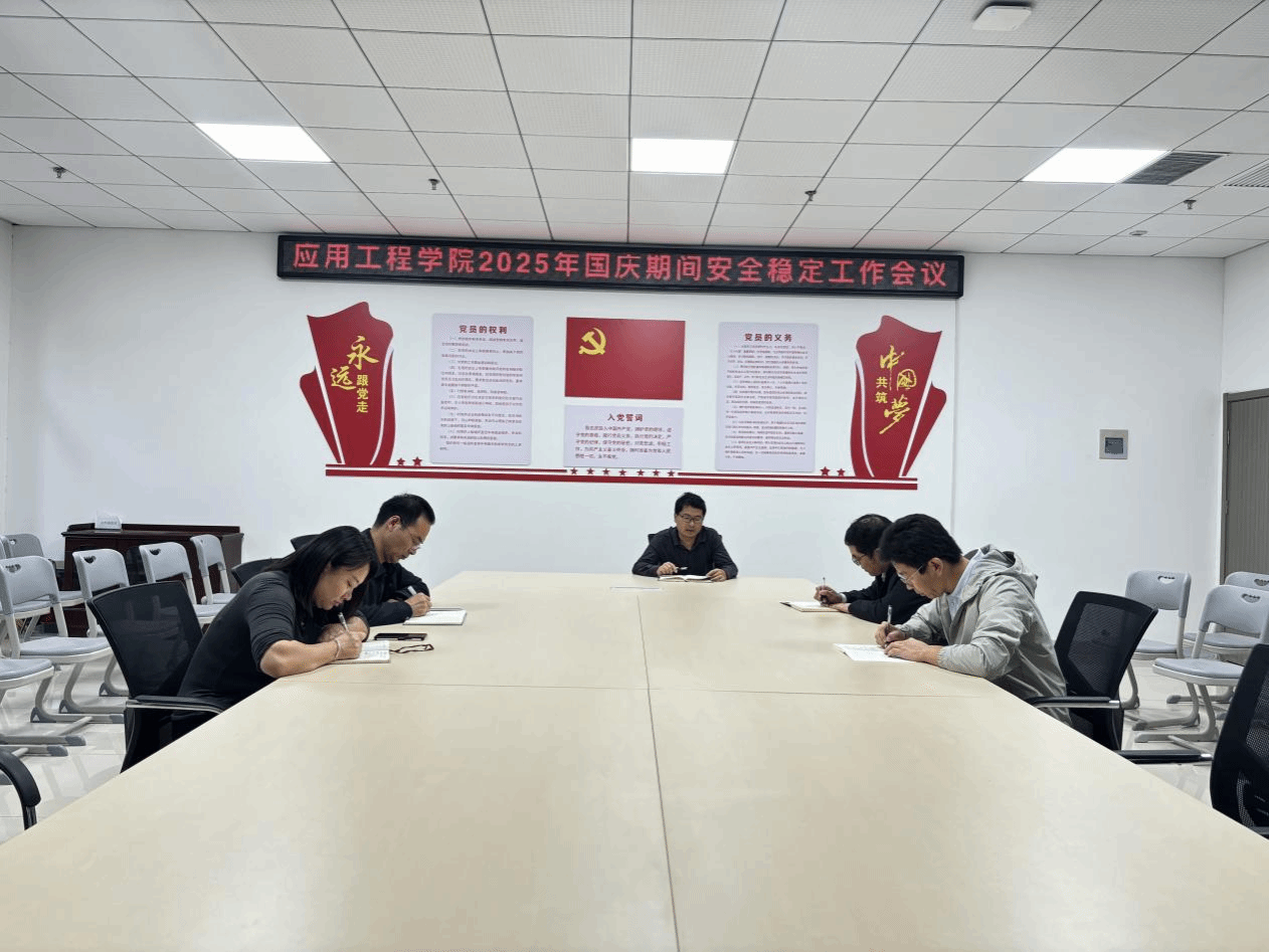 9月29日下午,应用工程学院在5124会议室,召开2025年国庆期间安全稳定工作会议。应用工程学院党委副书记齐天锋主持会议,学院各部门负责人参加会议。