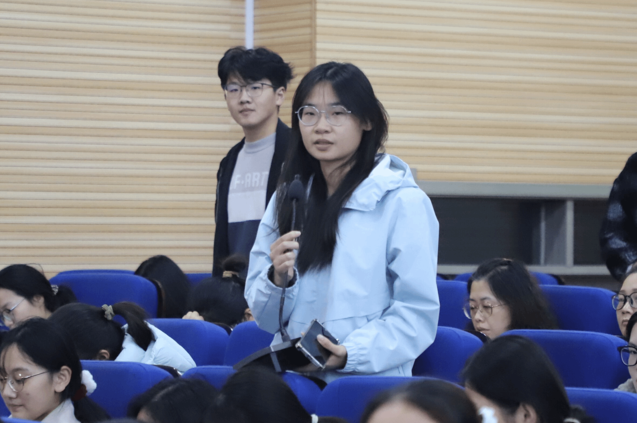 在答疑解惑环节,同学们踊跃提问,问题主要集中在新生如何备赛、研究方法如何选择、师生怎样协作等方面。潘桂根结合自身经验和赛事特点,为同学们进行了客观讲解,并提出了切实可行的建议。