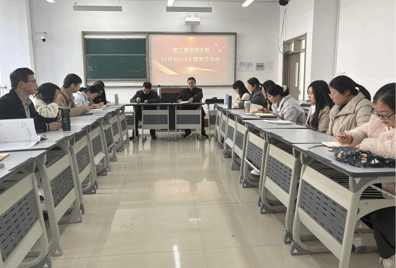 11月27日下午,应用工程学院教工第四党支部在51205室召开11月“6+N”主题党日活动。会议由第四党支部书记郝利军主持,全体教工党员参加。学院教学办主任胡三宁出席活动。